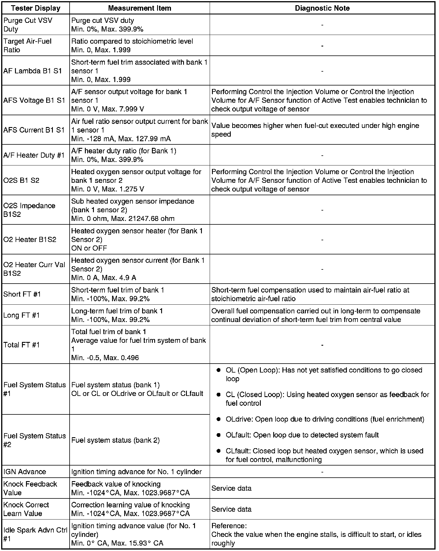 * The ECM records vehicle and driving condition information as freeze frame data the moment a DTC is stored. When troubleshooting, freeze frame data can be helpful in determining whether the vehicle was moving or stationary, whether the engine was warmed up or not, whether the air-fuel ratio was lean or rich, as well as other data recorded at the time of a malfunction.