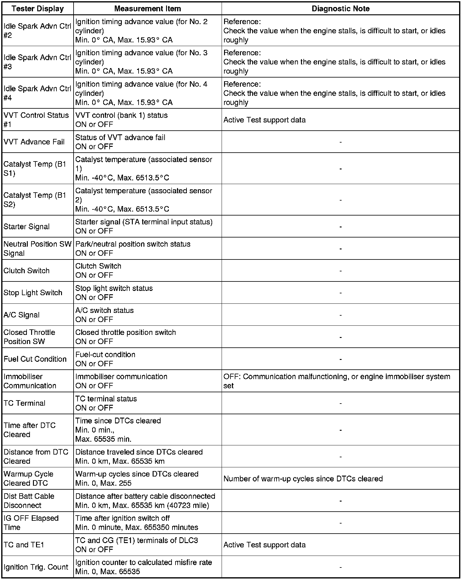 2AZ-FE ENGINE CONTROL SYSTEM: SFI SYSTEM: FREEZE FRAME DATA