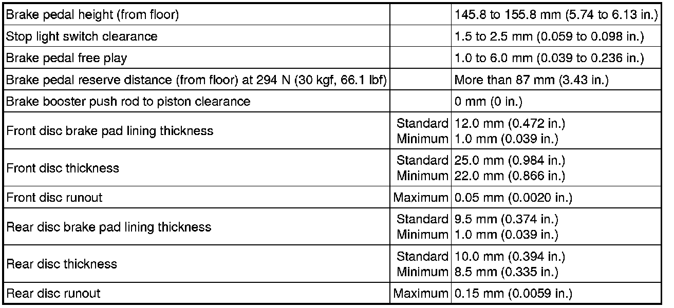 SERVICE SPECIFICATIONS: BRAKE: SERVICE DATA