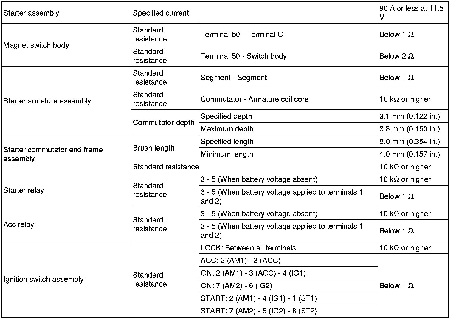 SERVICE SPECIFICATIONS: 2AZ-FE STARTING: SERVICE DATA