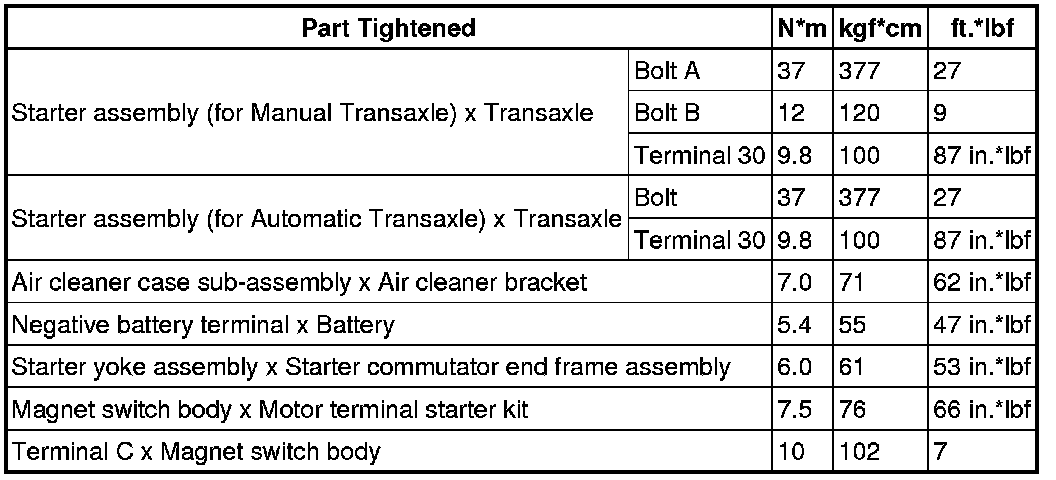 SERVICE SPECIFICATIONS: 2AZ-FE STARTING: TORQUE SPECIFICATIONS