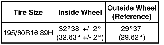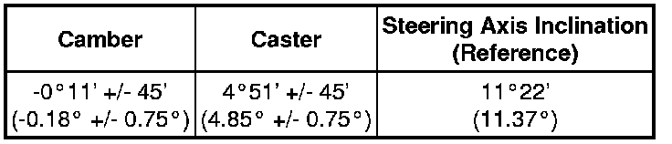 * The tolerance for the difference between the left and right wheels is 30' (0.5°) or less for both the camber and caster.