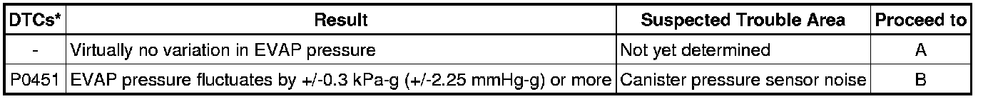 If the reference pressure difference between the first and second checks is greater than the specification, all the DTCs relating to the reference pressure (P043E, P043F, P2401, P2402 and P2419) are stored.