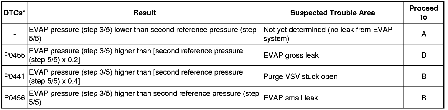 (b) Compare the EVAP pressure in step 3/5 and the second reference pressure (step 5/5).