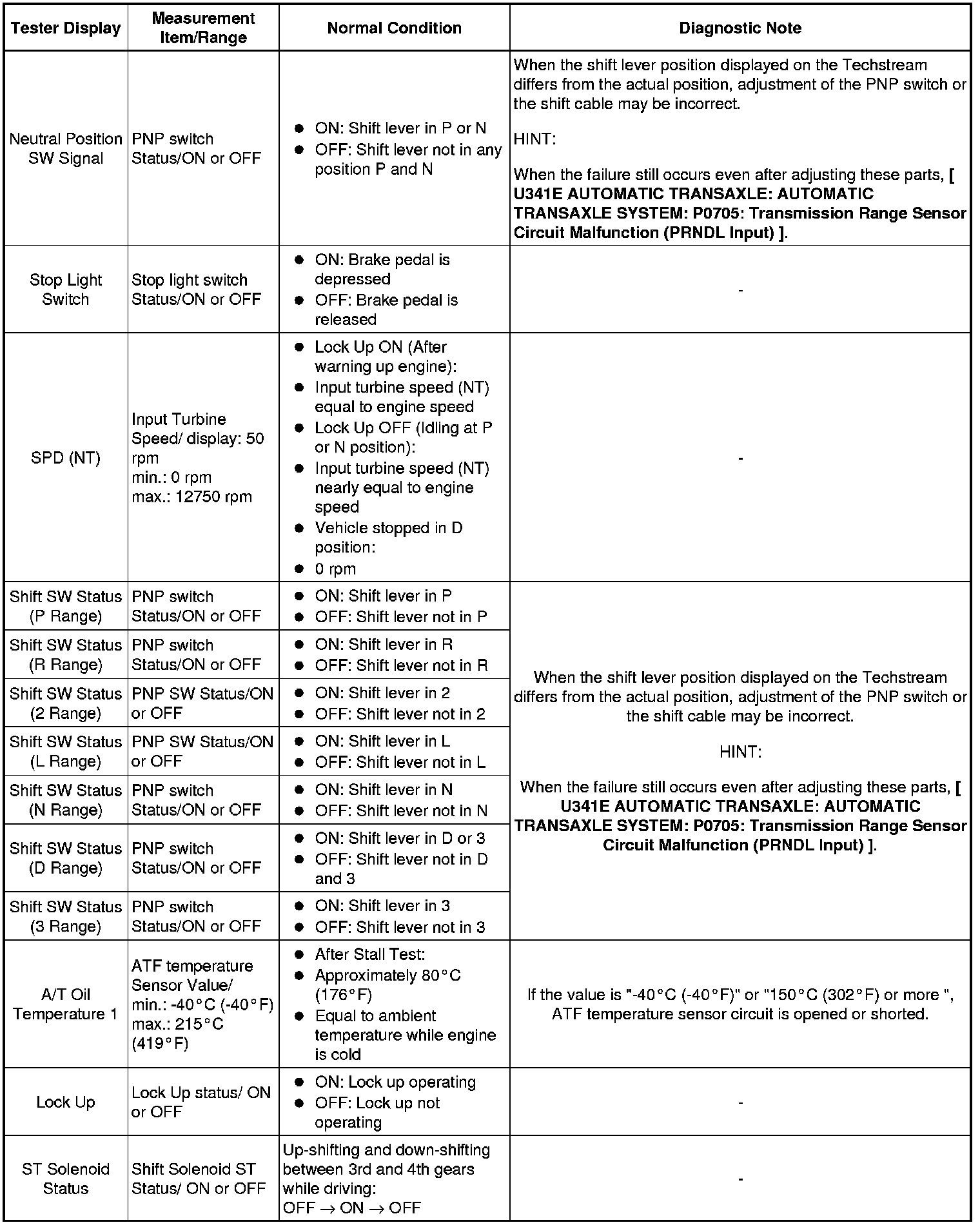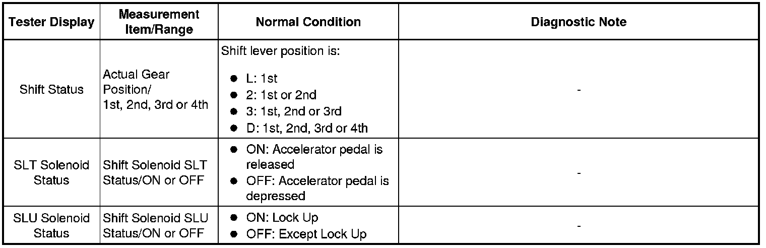 U341E AUTOMATIC TRANSAXLE: AUTOMATIC TRANSAXLE SYSTEM: DATA LIST / ACTIVE TEST