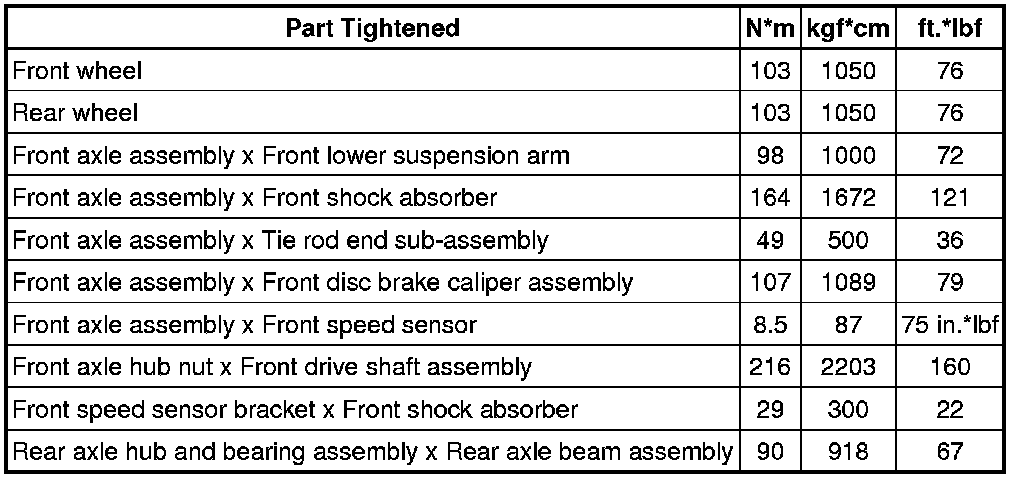 SERVICE SPECIFICATIONS: AXLE: TORQUE SPECIFICATIONS