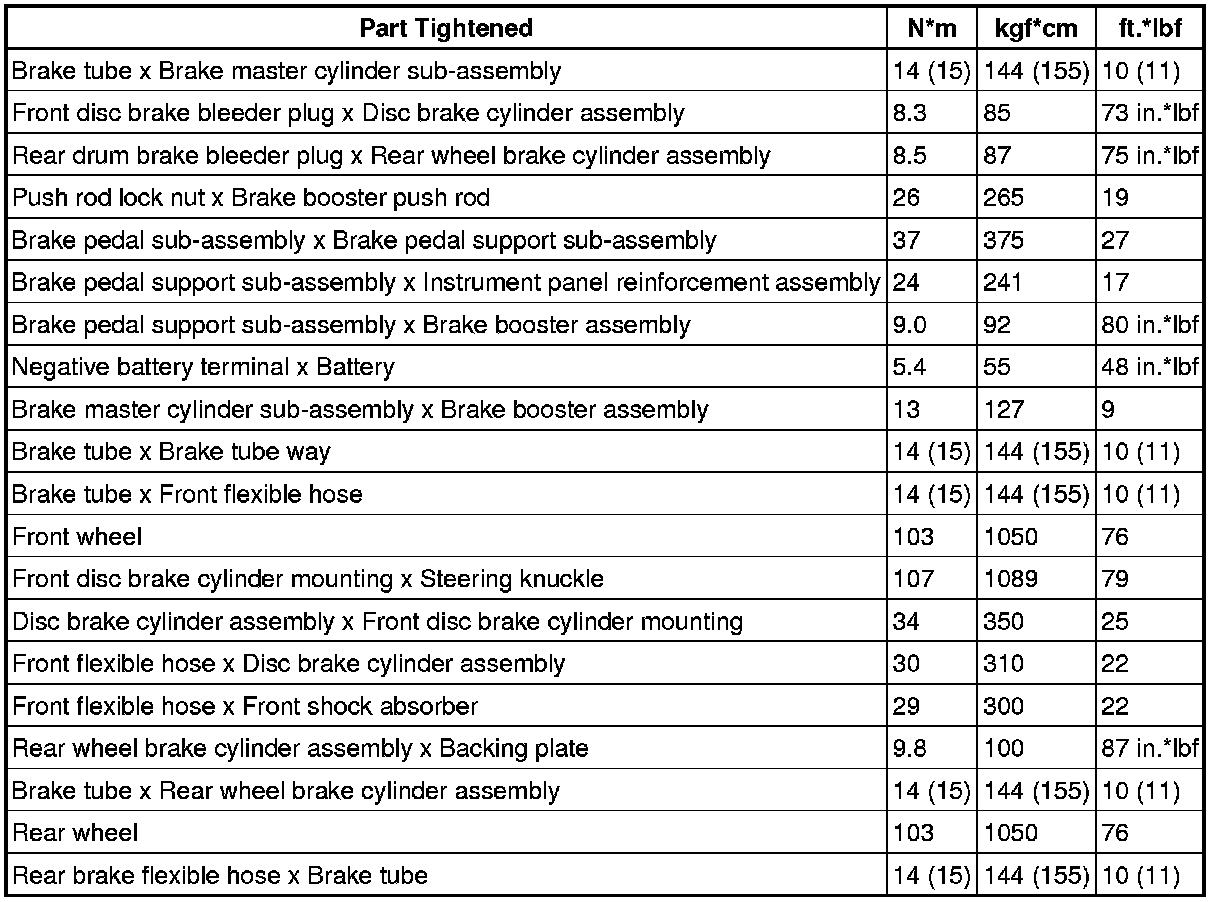 SERVICE SPECIFICATIONS: BRAKE: TORQUE SPECIFICATIONS