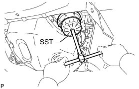 (b) Remove the oil pan drain plug and gasket, and then drain the engine oil into a container.