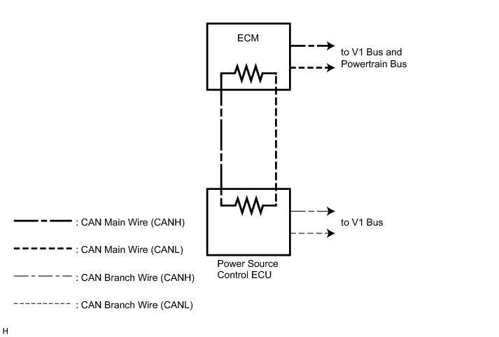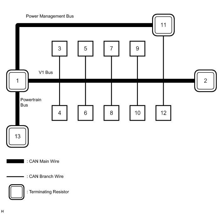 (a) The V1 bus, power management bus and powertrain bus each have termination circuits with resistance of 120 Ohms X 2. High speed communication at 500 kbps is possible.