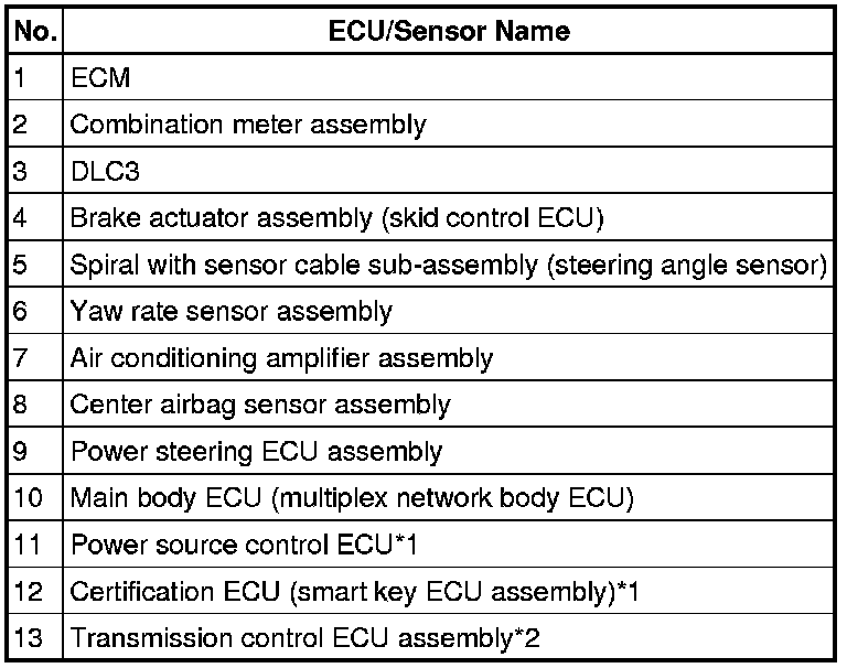 4. ECUS OR SENSORS WHICH COMMUNICATE VIA CAN COMMUNICATION SYSTEM