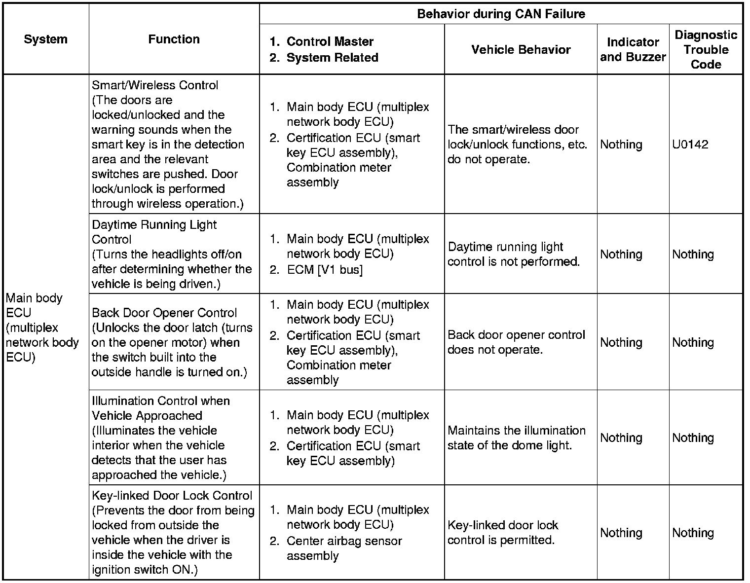 NETWORKING: CAN COMMUNICATION SYSTEM: FAIL-SAFE CHART