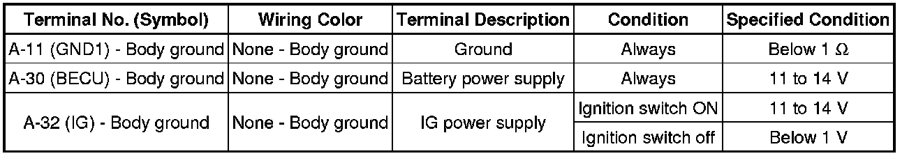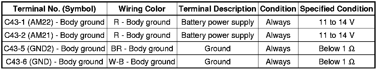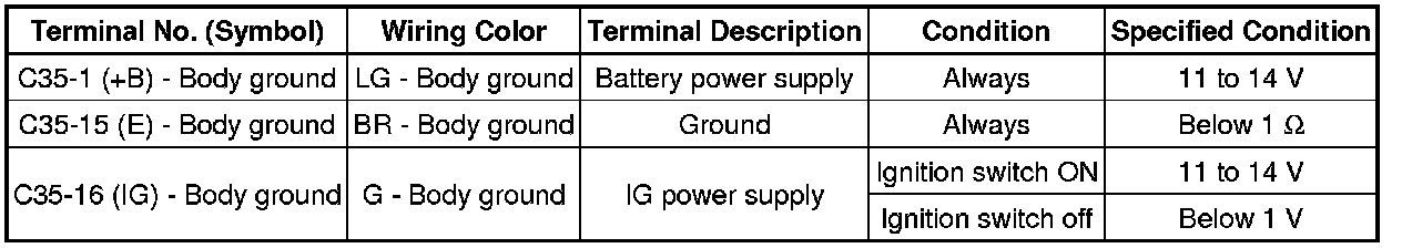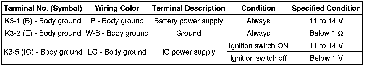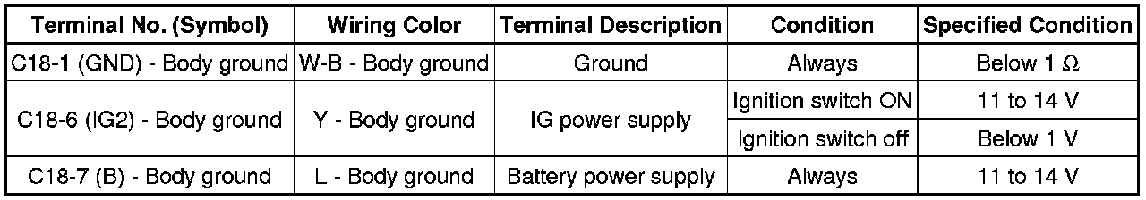 If the result is not as specified, there may be a malfunction on the wire harness side or in the instrument panel junction block assembly.