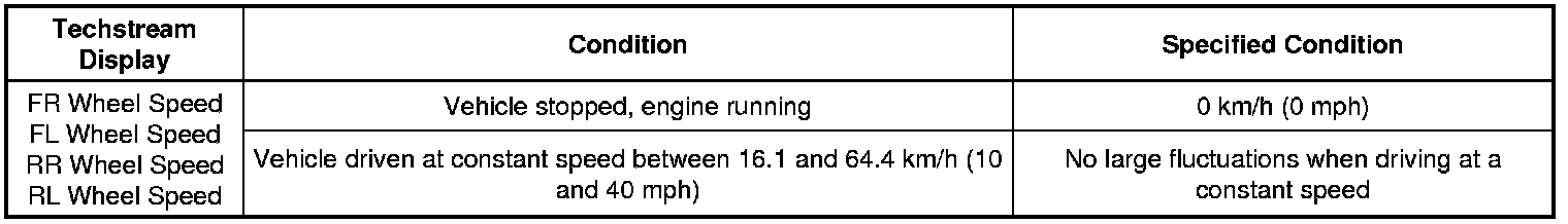 6. READ VALUE USING TECHSTREAM (FR, FL, RR, RL WHEEL SPEED)