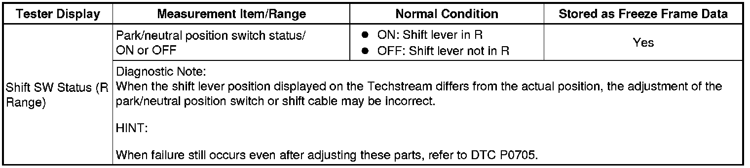 Shift SW Status (R Range)