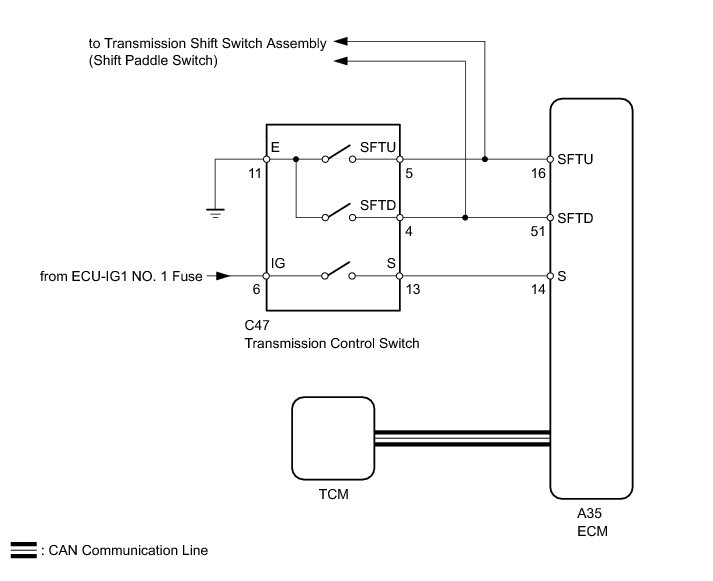 U760E AUTOMATIC TRANSMISSION / TRANSAXLE: AUTOMATIC TRANSAXLE SYSTEM: Transmission Control Switch Circuit