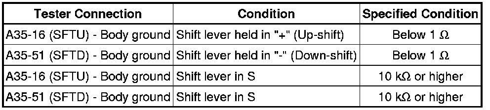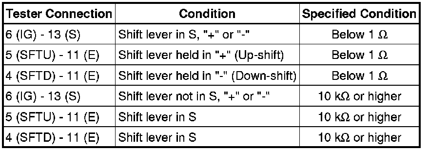 Moving the shift lever to "+" once raises the shift range by one, and moving the shift lever to "-" once lowers the shift range by one.