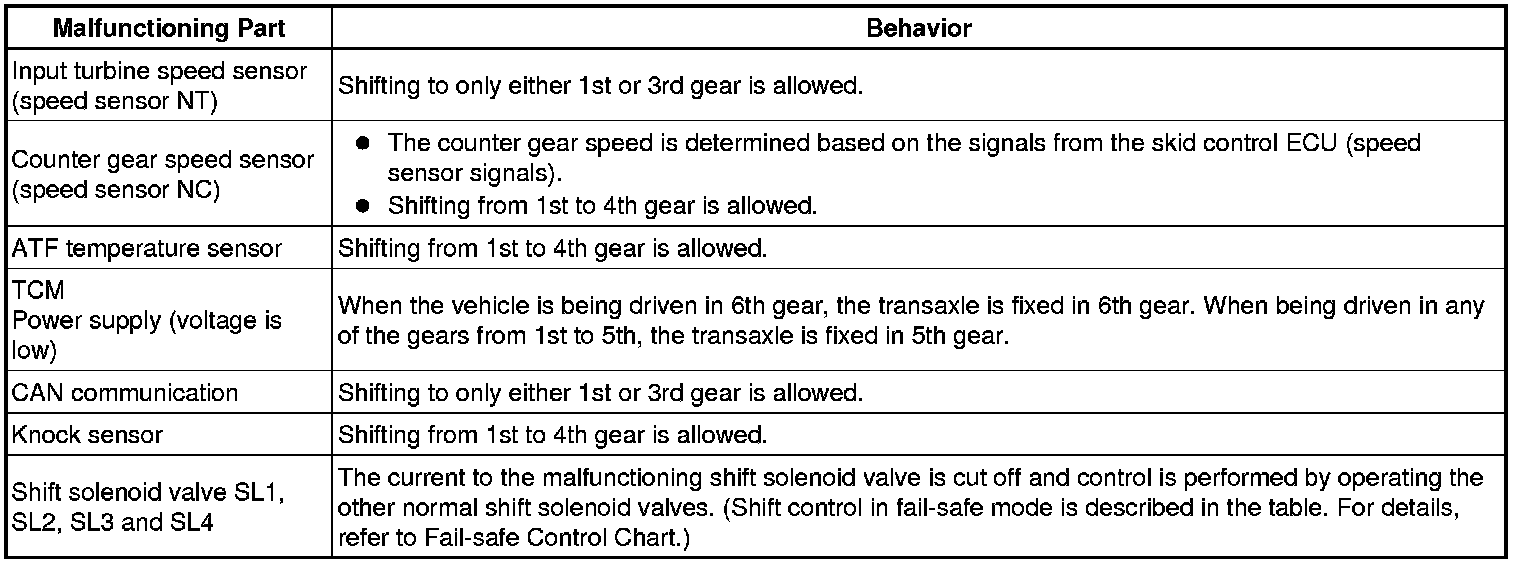 U760E AUTOMATIC TRANSMISSION / TRANSAXLE: AUTOMATIC TRANSAXLE SYSTEM: FAIL-SAFE CHART