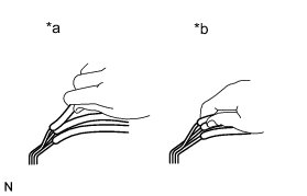 * An airbag or pretensioner may be activated by static electricity. To prevent this, be sure to touch a metal surface with bare hands to discharge static electricity before performing this procedure.