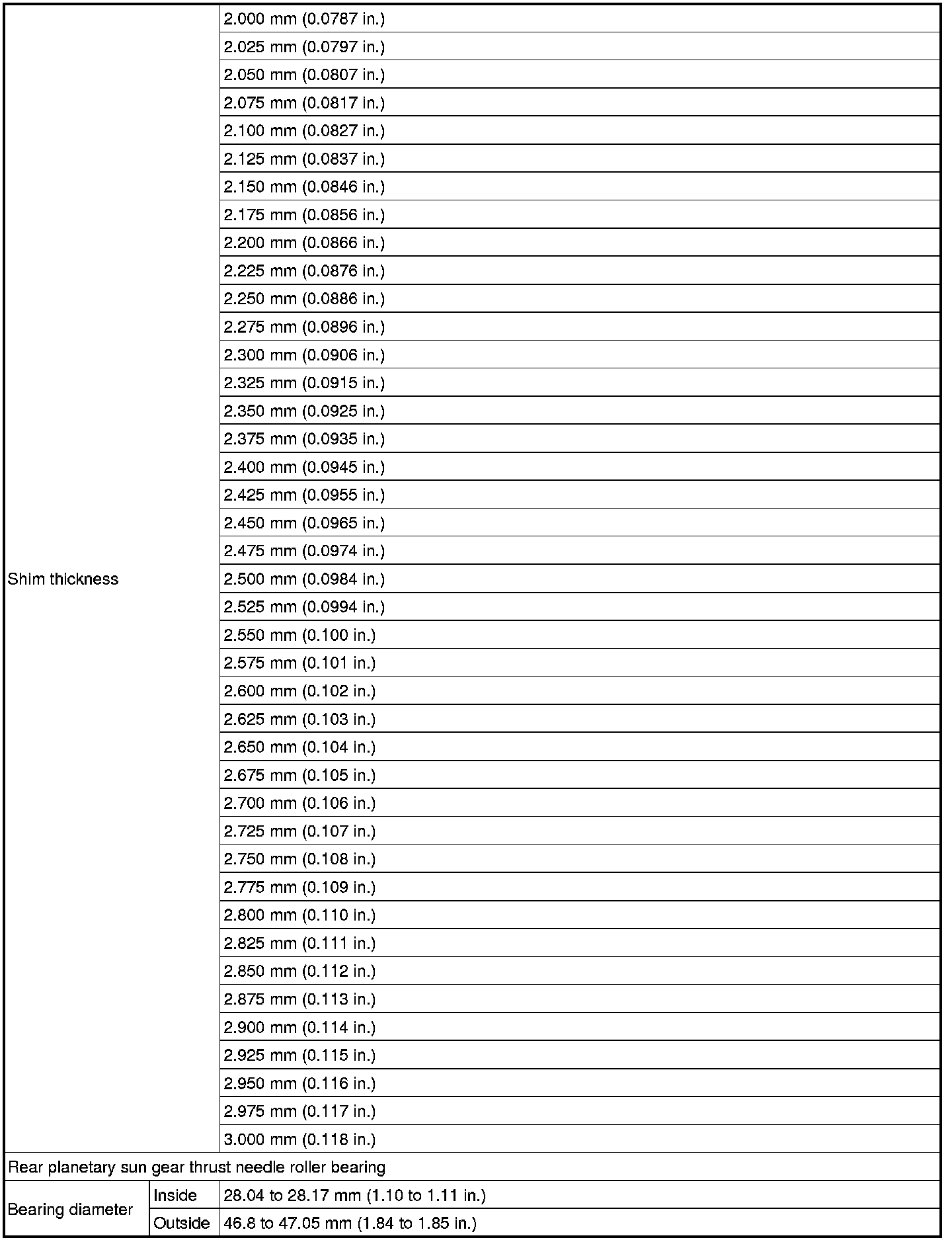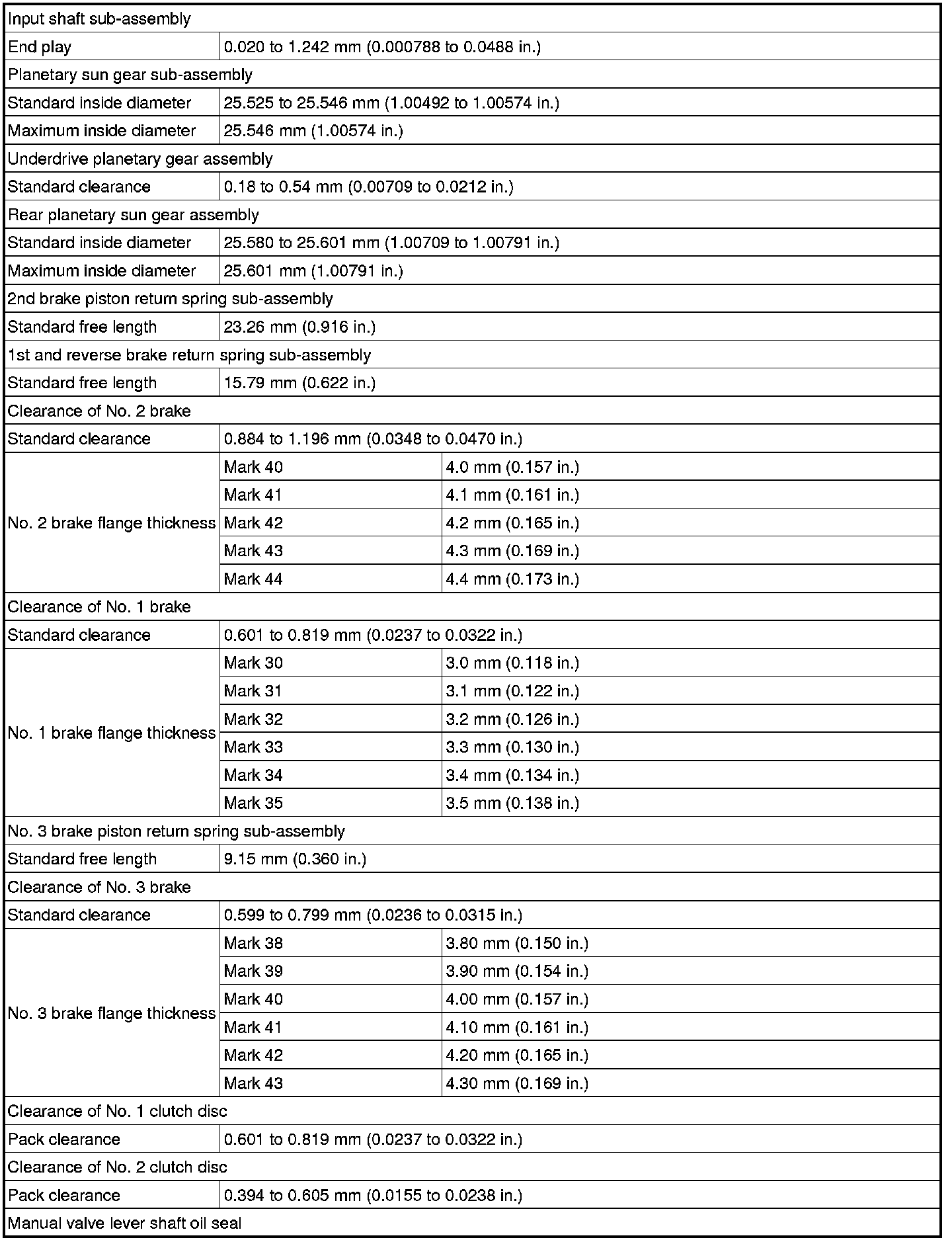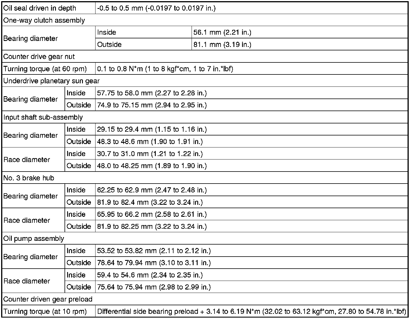 SPECIFICATIONS: U760E AUTOMATIC TRANSMISSION / TRANSAXLE: SERVICE DATA