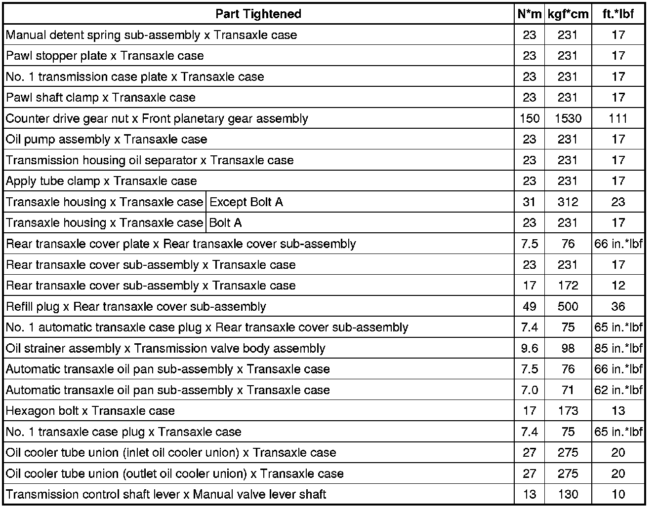 SPECIFICATIONS: U760E AUTOMATIC TRANSMISSION / TRANSAXLE: TORQUE SPECIFICATIONS