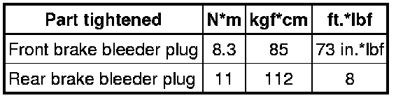 SPECIFICATIONS: BRAKE SYSTEM (OTHER): TORQUE SPECIFICATIONS