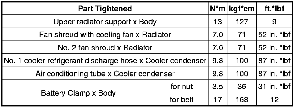 SPECIFICATIONS: 2AR-FE COOLING: TORQUE SPECIFICATIONS
