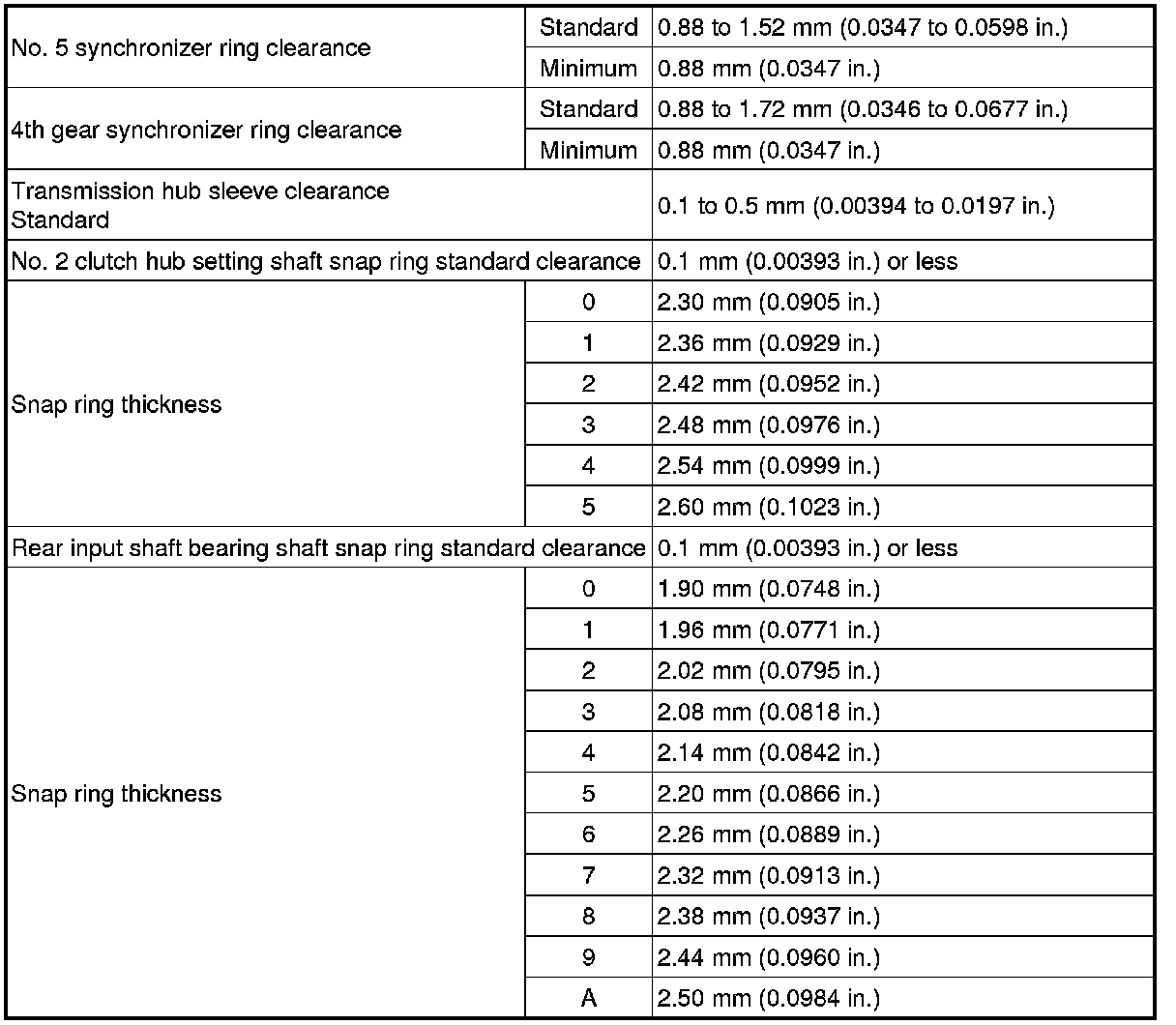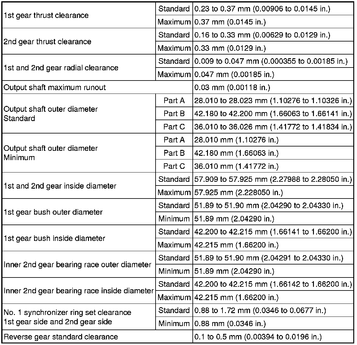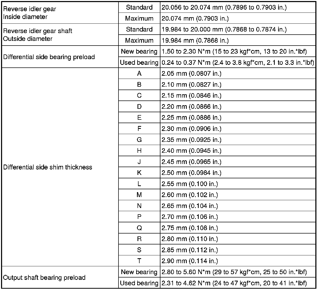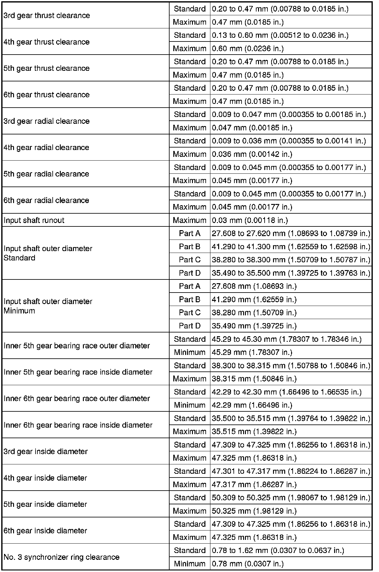 SPECIFICATIONS: EB60 MANUAL TRANSMISSION / TRANSAXLE: SERVICE DATA