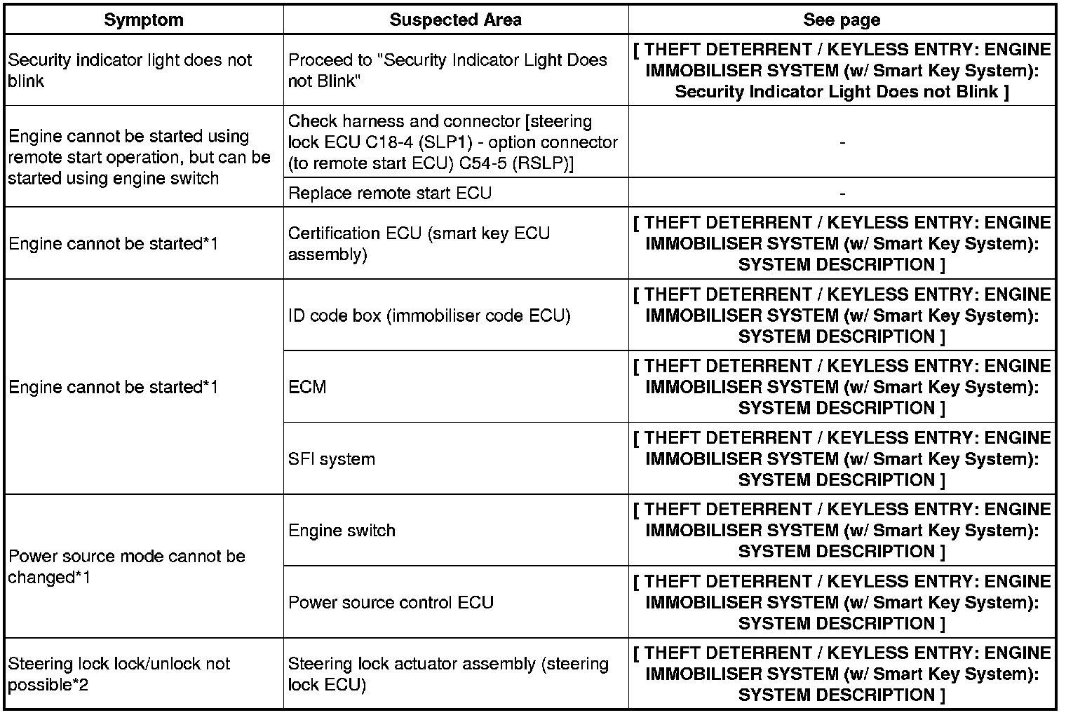 * *1: Refer to Problem Symptoms Table for Smart Key System (for Start Function) Problem Symptoms Table.