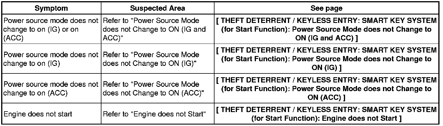 THEFT DETERRENT / KEYLESS ENTRY: SMART KEY SYSTEM (for Start Function): PROBLEM SYMPTOMS TABLE