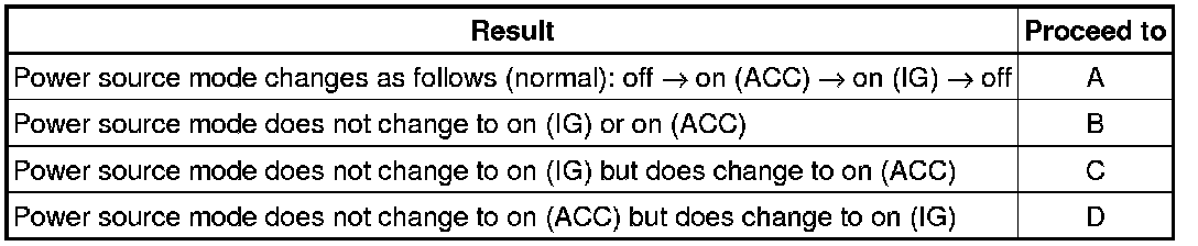 B -- GO TO POWER SOURCE MODE DOES NOT CHANGE TO ON (IG AND ACC) Power Source Mode does not Change to ON (IG and ACC)