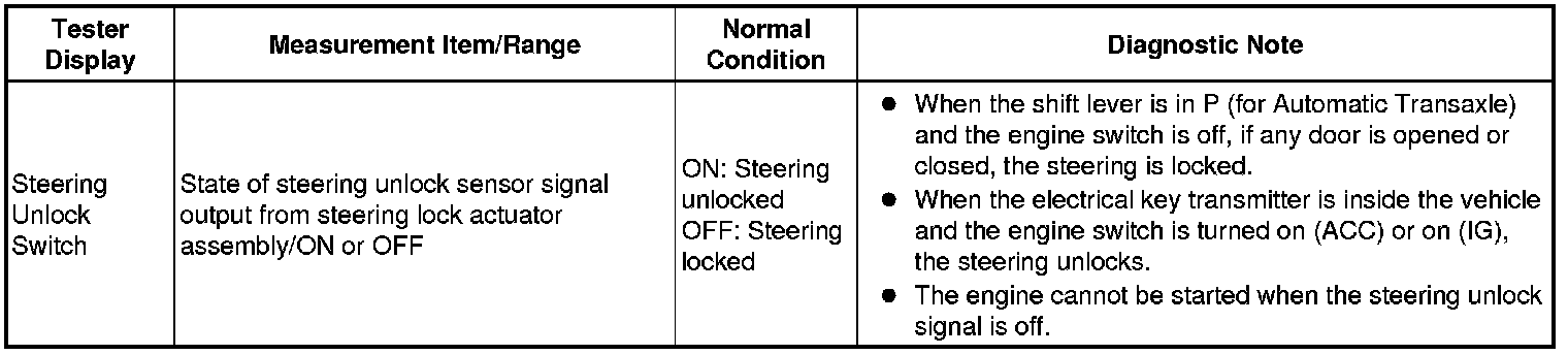 NG -- READ VALUE USING TECHSTREAM (STEERING UNLOCK SWITCH)