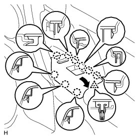 (b) Attach the 9 claws and clip to install the power window regulator switch assembly with front door armrest base panel.