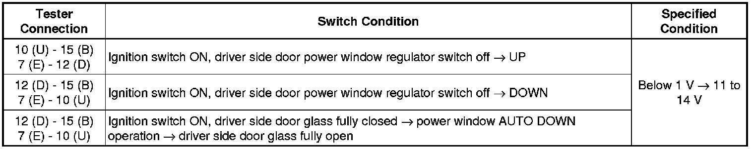 WINDOW / GLASS: POWER WINDOW MASTER SWITCH: ON-VEHICLE INSPECTION