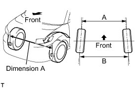(d) Put tread center marks on the rearmost points of the front wheels and measure the distance between the marks (dimension B).