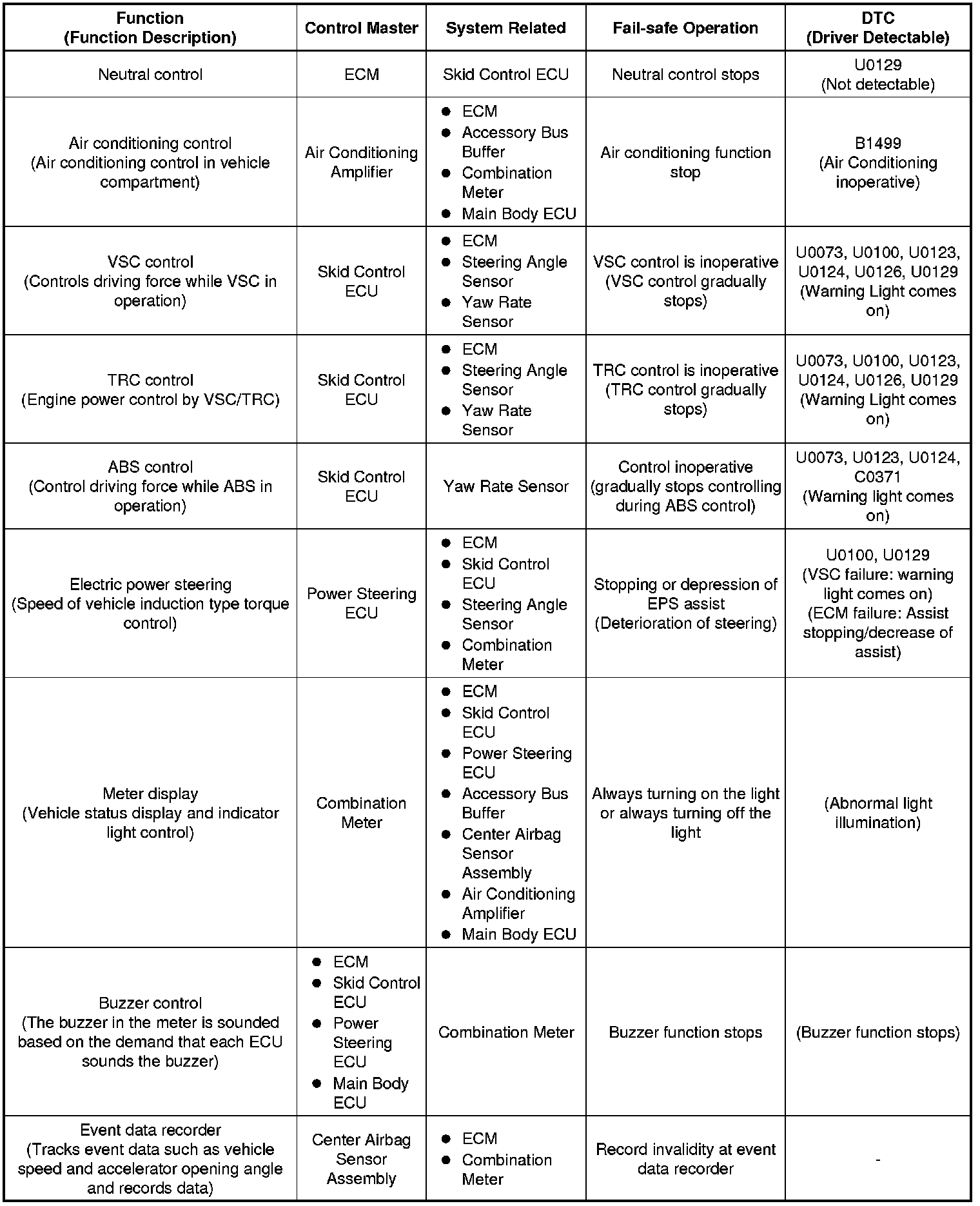 (a) When communication fails in any of the CAN bus wires (communication wires) due to a short circuit or other causes, the fail-safe function, which is specified for each system, operates to prevent the system from malfunctioning.