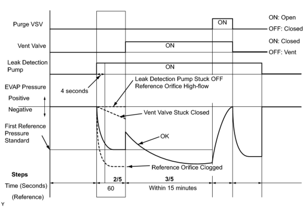 (b) Compare the EVAP pressure in step 3/5 and the second reference pressure (step 5/5).