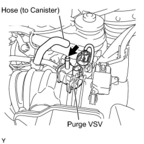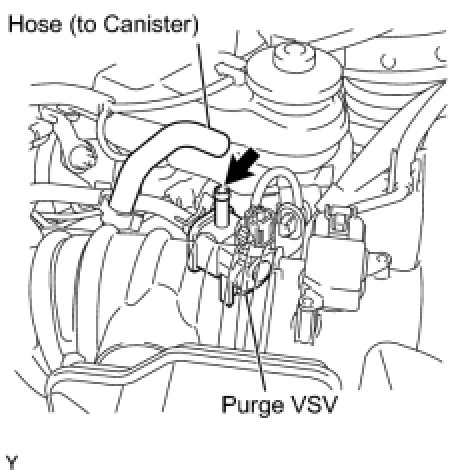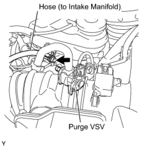 (a) Disconnect the hose (connected to the intake manifold) from the purge VSV.