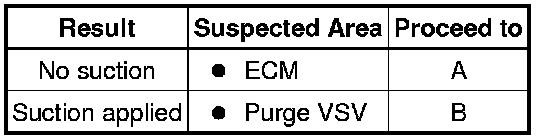 While the engine is running and the purge VSV (Vacuum Switching Valve) is ON (open), the ECM monitors the purge flow by measuring the EVAP pressure change. If negative pressure is not created, the ECM begins the 2nd monitor.