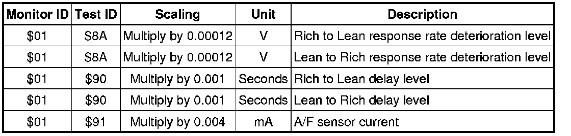 If you use a generic scan tool, multiply the value by the scaling value listed below.