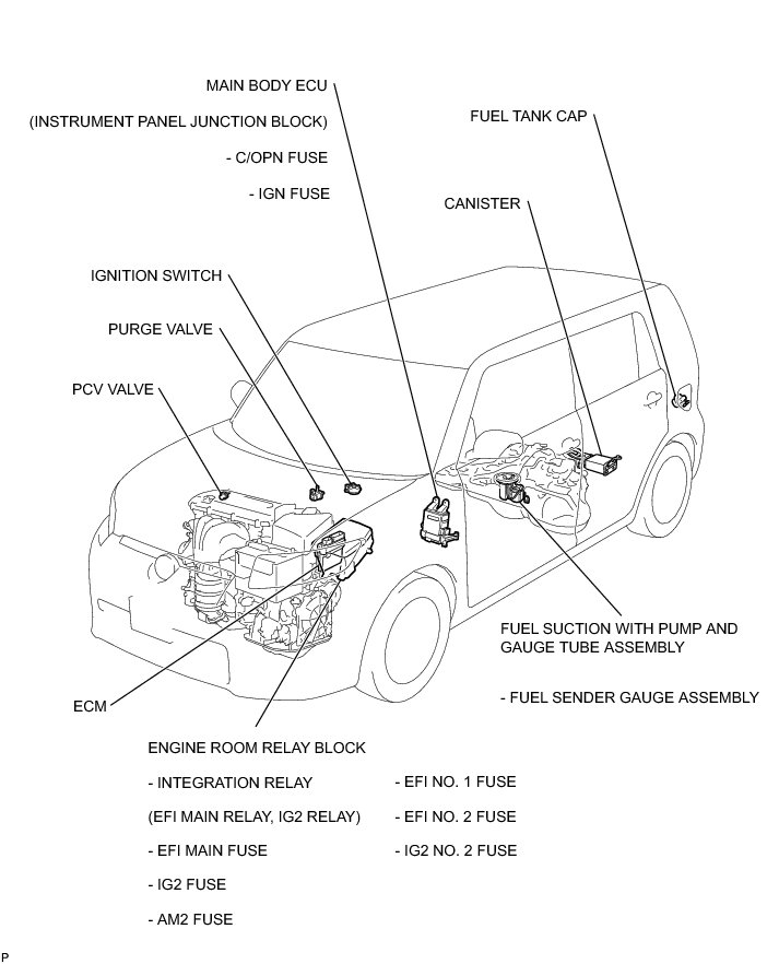 2AZ-FE EMISSION CONTROL: EMISSION CONTROL SYSTEM: PARTS LOCATION