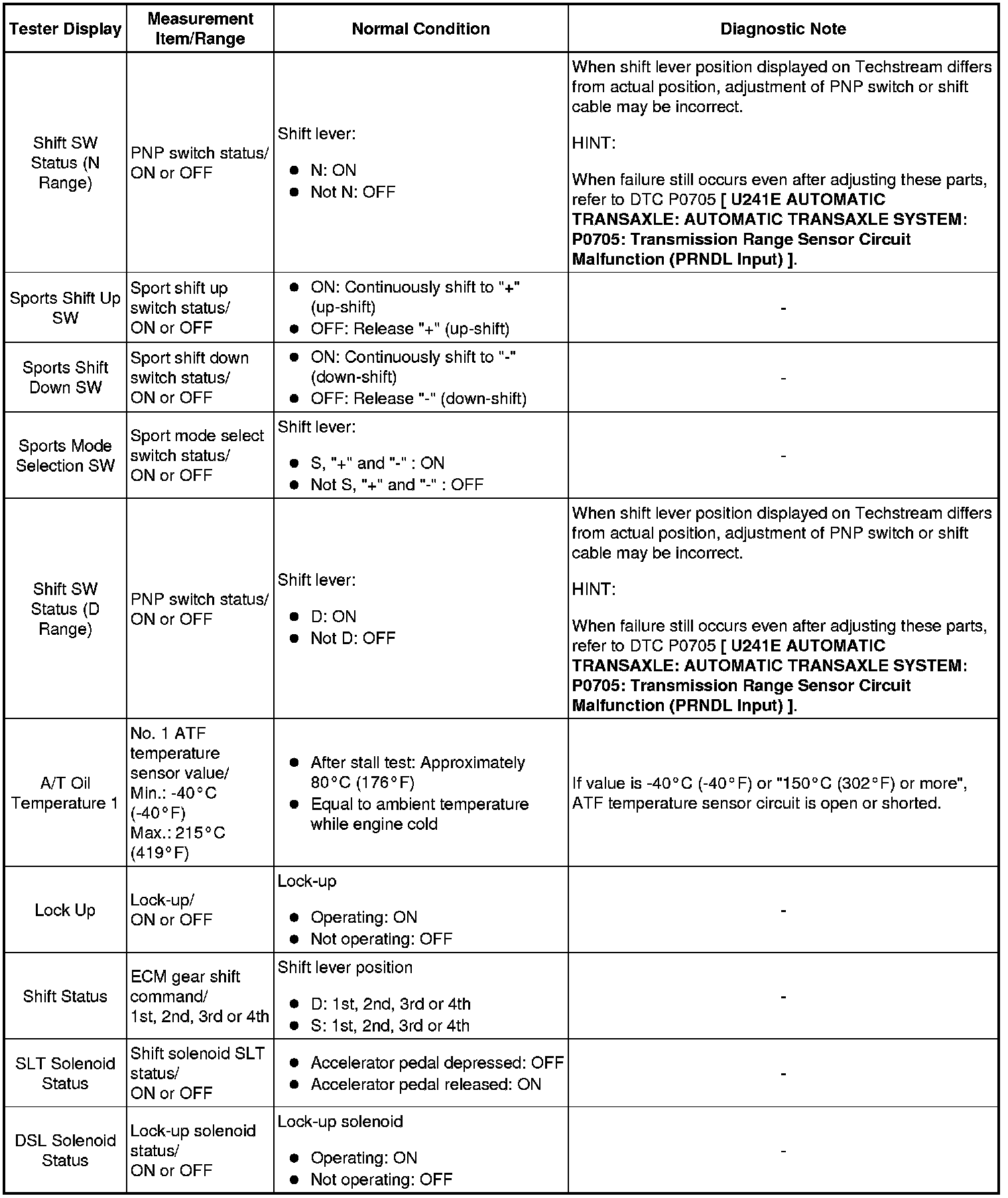 U241E AUTOMATIC TRANSAXLE: AUTOMATIC TRANSAXLE SYSTEM: DATA LIST / ACTIVE TEST