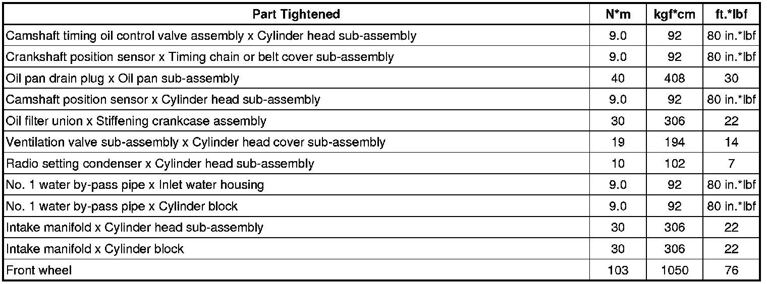 SERVICE SPECIFICATIONS: 2AZ-FE ENGINE MECHANICAL: TORQUE SPECIFICATIONS