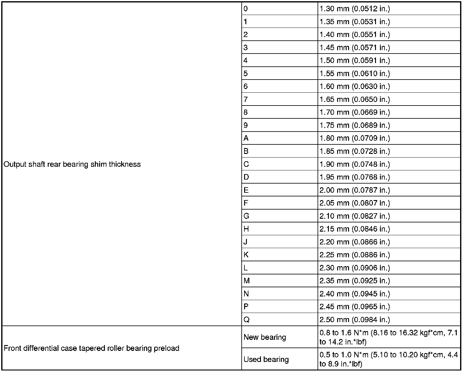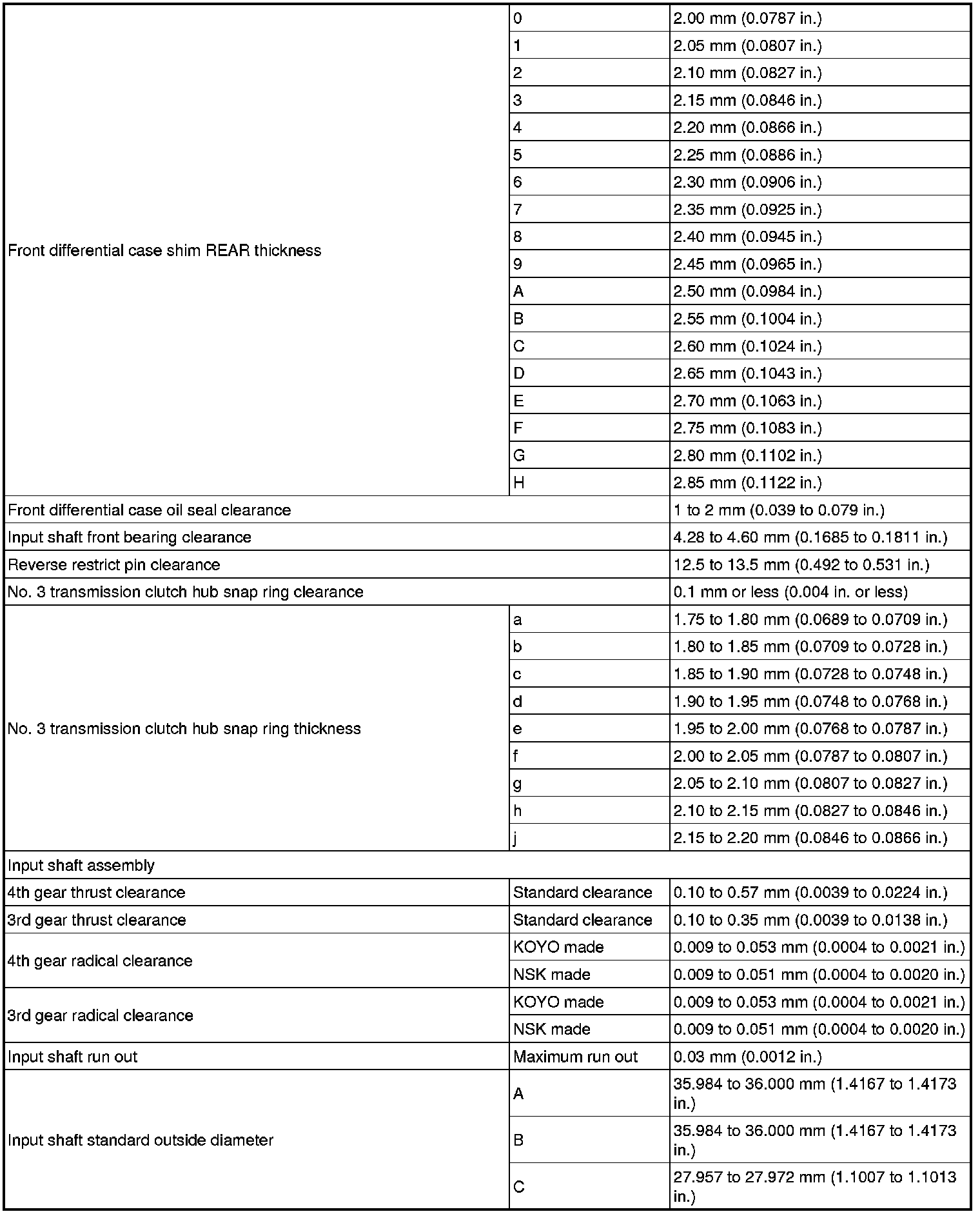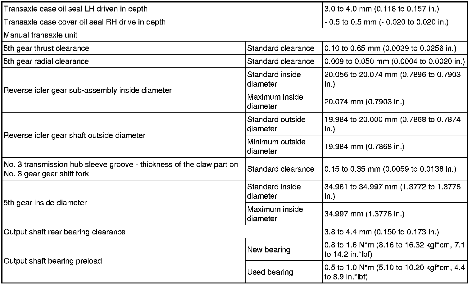 SERVICE SPECIFICATIONS: E351 MANUAL TRANSAXLE: SERVICE DATA