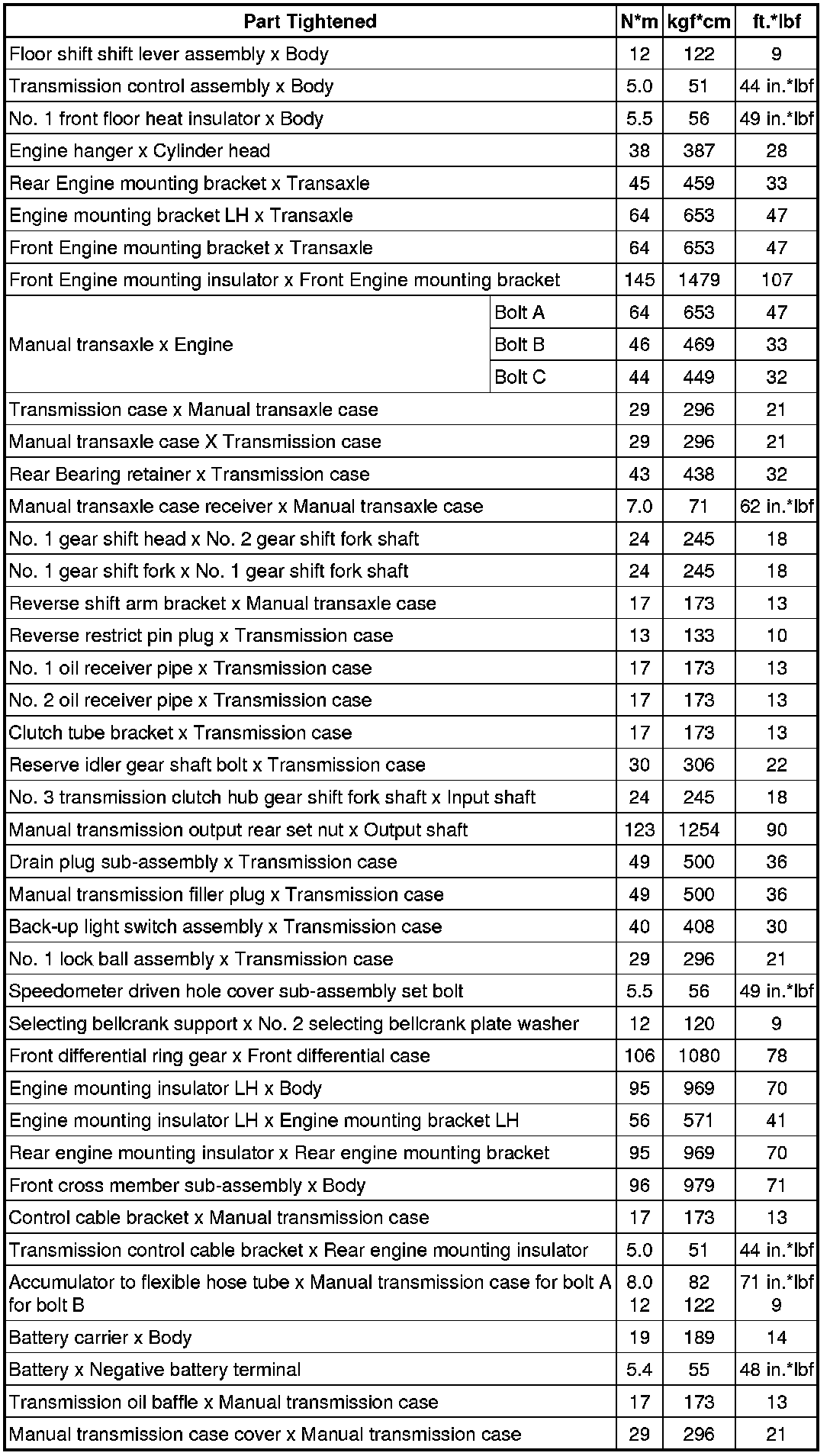 SERVICE SPECIFICATIONS: E351 MANUAL TRANSAXLE: TORQUE SPECIFICATIONS