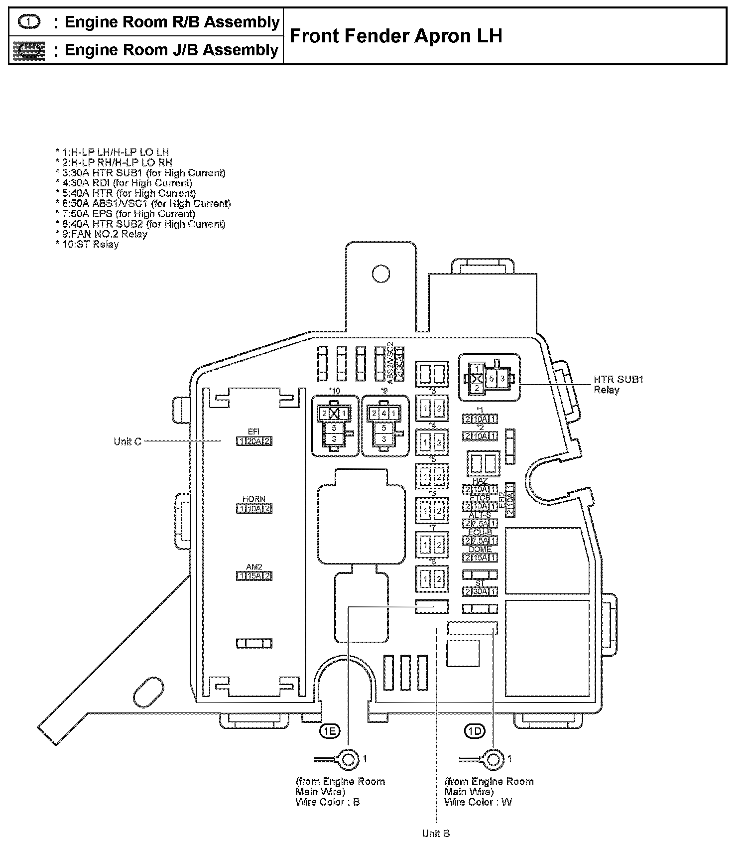 Engine Room R/B Assembly, Engine Room J/B Assembly - Front Fender Apron LH: