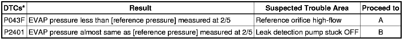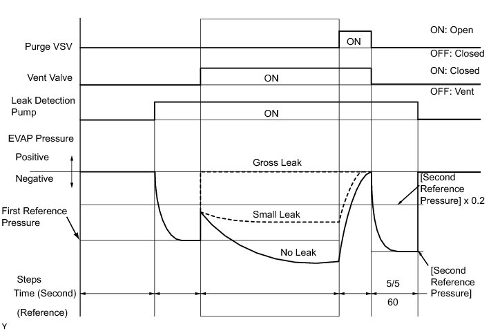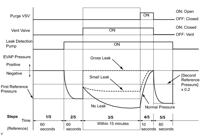 (b) Compare the EVAP pressure in step 3/5 and the second reference pressure (step 5/5).