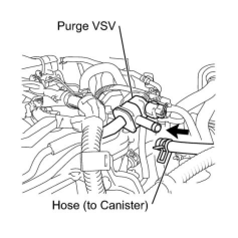 (a) Disconnect the hose (connected to the intake manifold) from the purge VSV.
