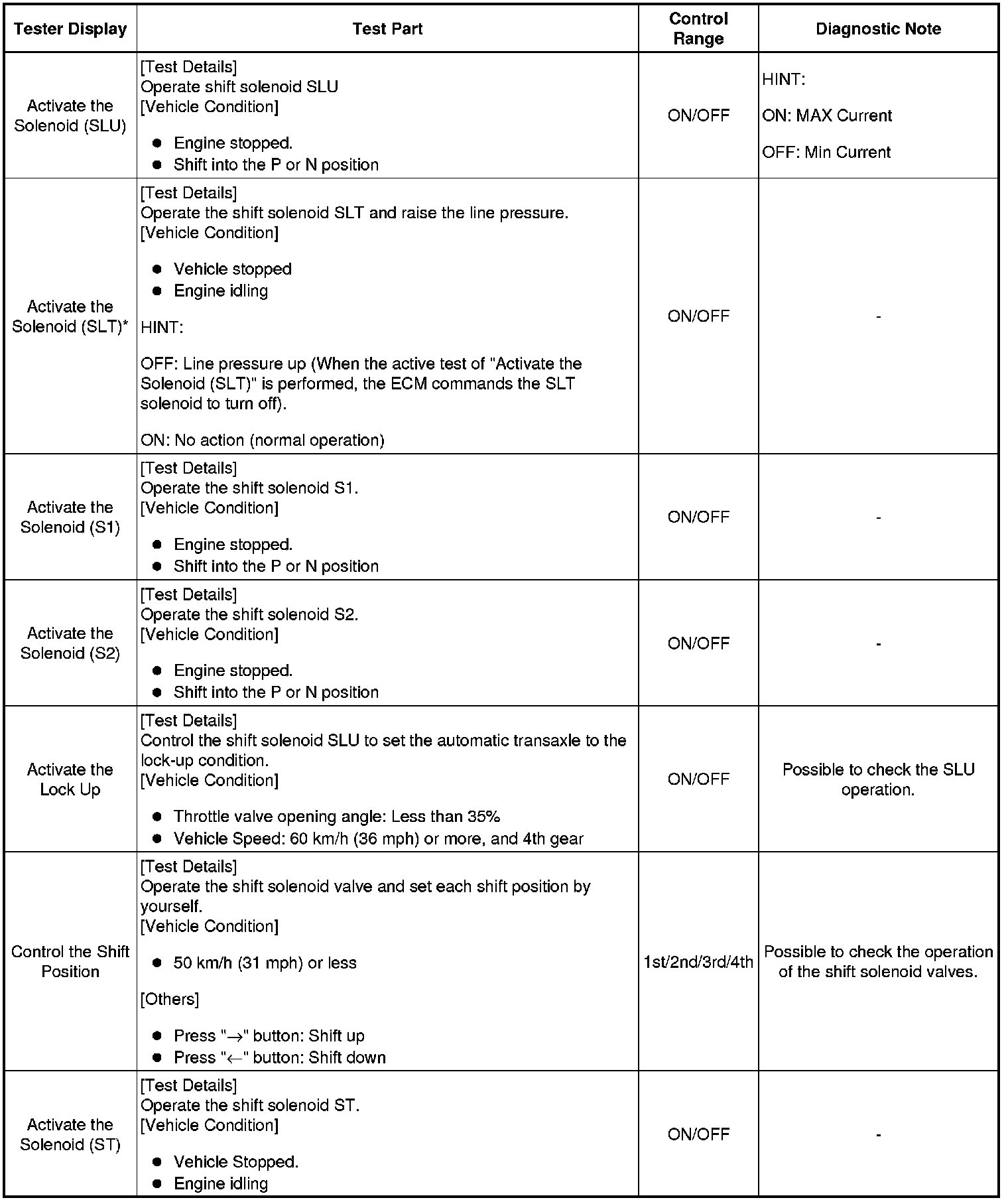 *: Activate the Solenoid (SLT) in the Active Test is performed to check the line pressure changes by connecting the SST to the automatic transaxle, which is used in the HYDRAULIC TEST Hydraulic Test as well.