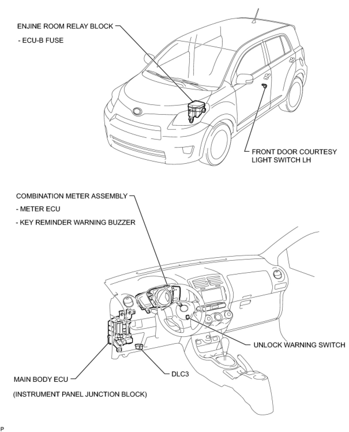 DOOR LOCK: KEY REMINDER WARNING SYSTEM: PARTS LOCATION