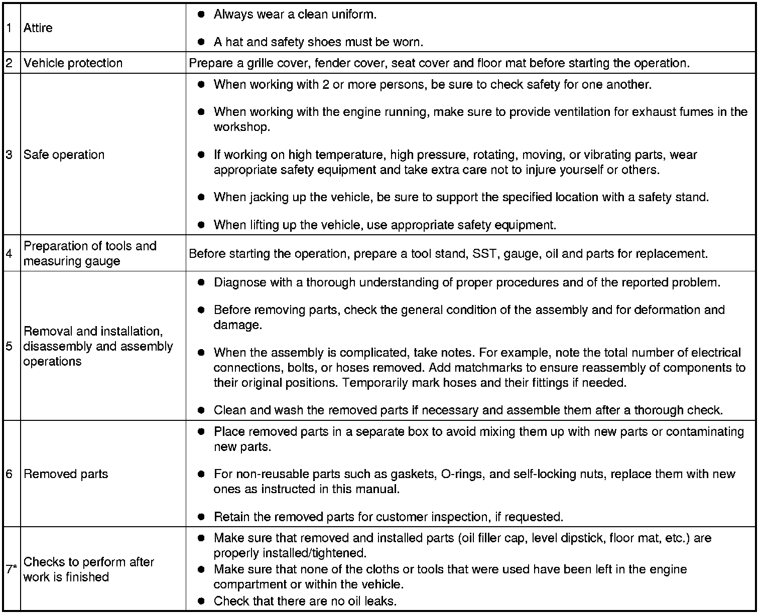 (2) Be sure to follow the instructions for work preparation and final confirmation of proper operation of the VSC system.